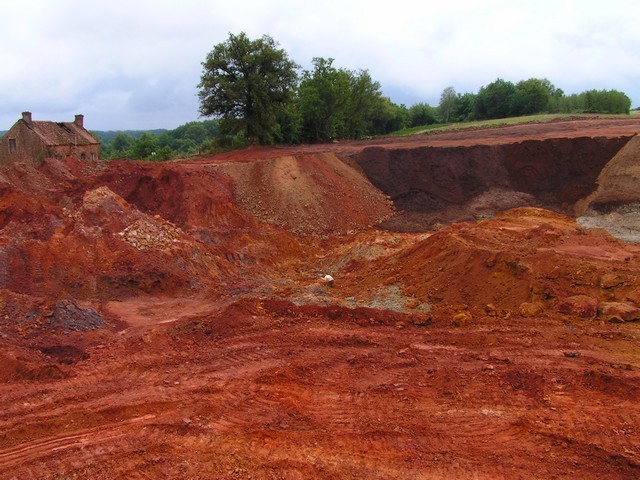 On aperçoit au fond l'ancienne usine de traitement, qui a continuée de fonctionner après la fermeture de la carrière avec l'import de barytine en provenance du Maroc ...