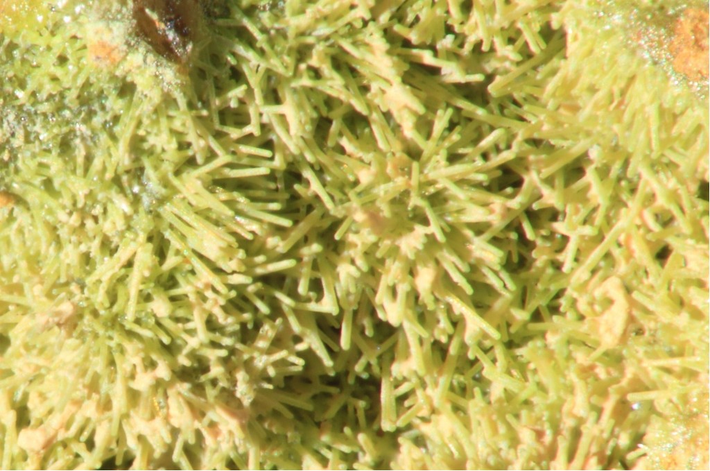 Ce qui est etonnant c'est d'avoir de la chalcotrichite, ou par definition les cristaux sont tres fins et laissent passer la lumiere, dont les aiguilles ne sont pas rouge sang.