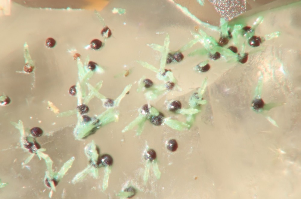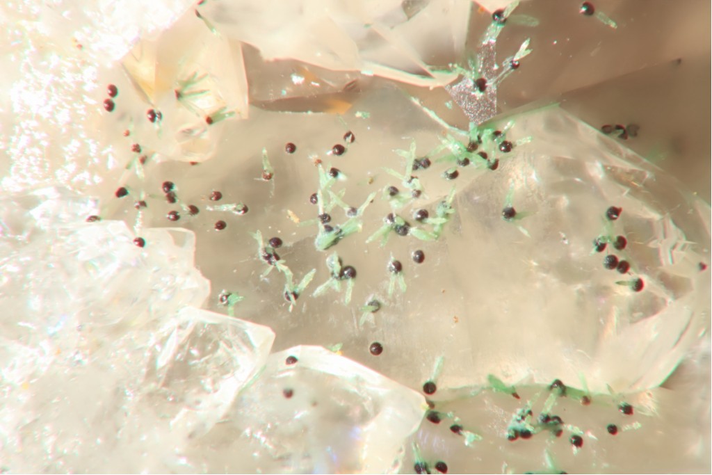 Sphérules de malachite sur lit de baryte tabulaire. Du banal . :P