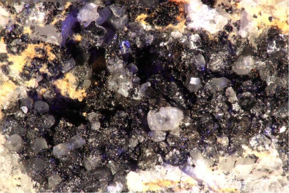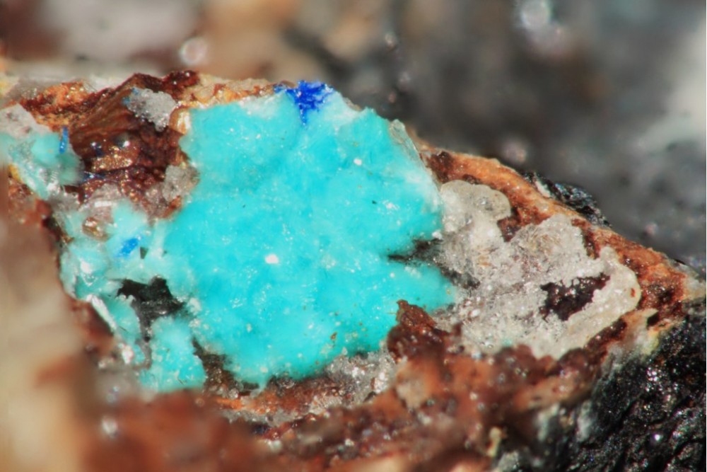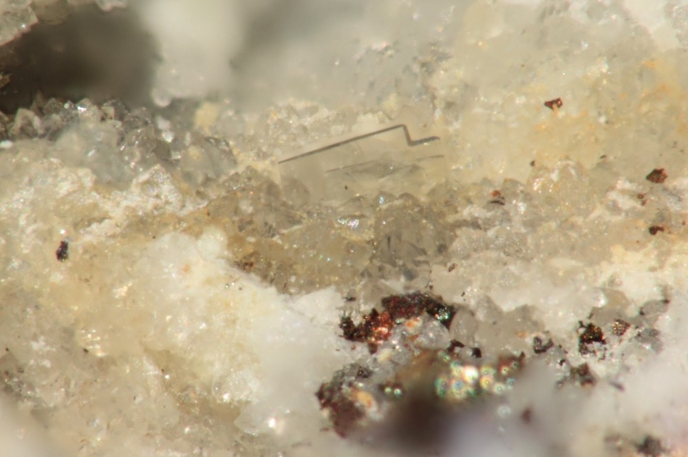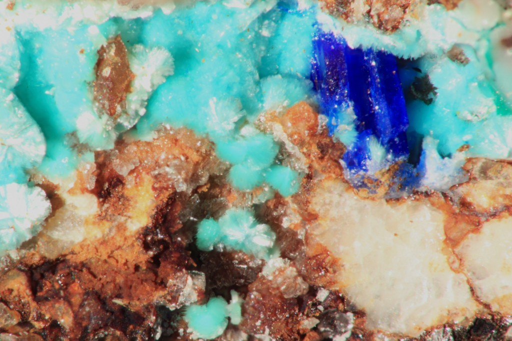 Une minéralisation qui ressemble à de l'aragonite avec des oxydes de fer .