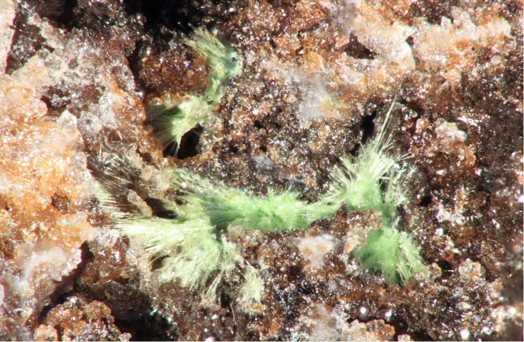 Comme l'a dit Laurent, cristaux chevelus du groupe de la mixite (on verra après analyse si on a affaire à agardite...)
