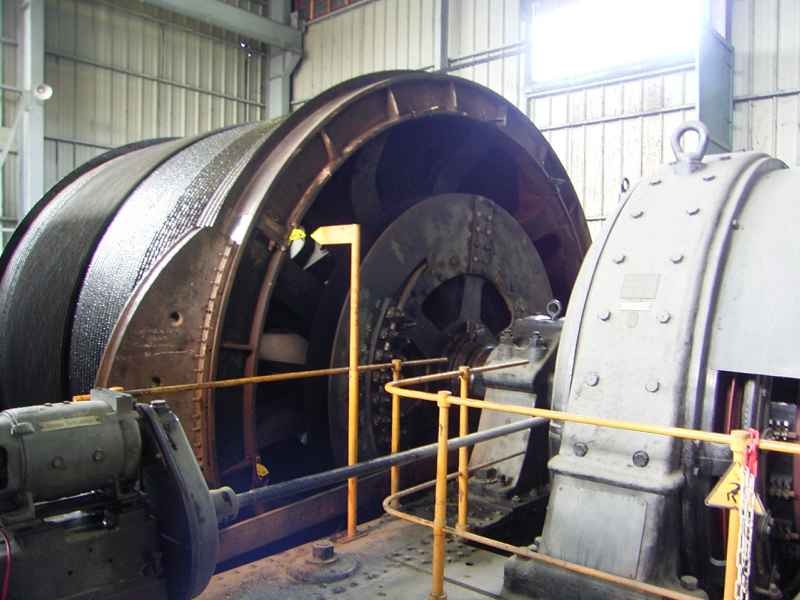La machinerie du puits Ricard, un 'petit tambour' de treuil