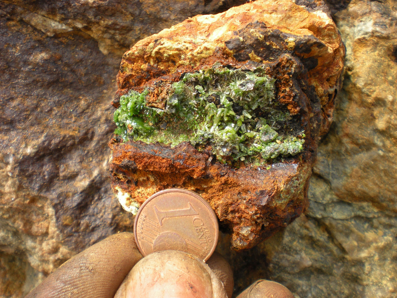 Pour la smithsonite , j'ai un pavé qui doit faire 5 x 7 cm et qui en est recouvert .