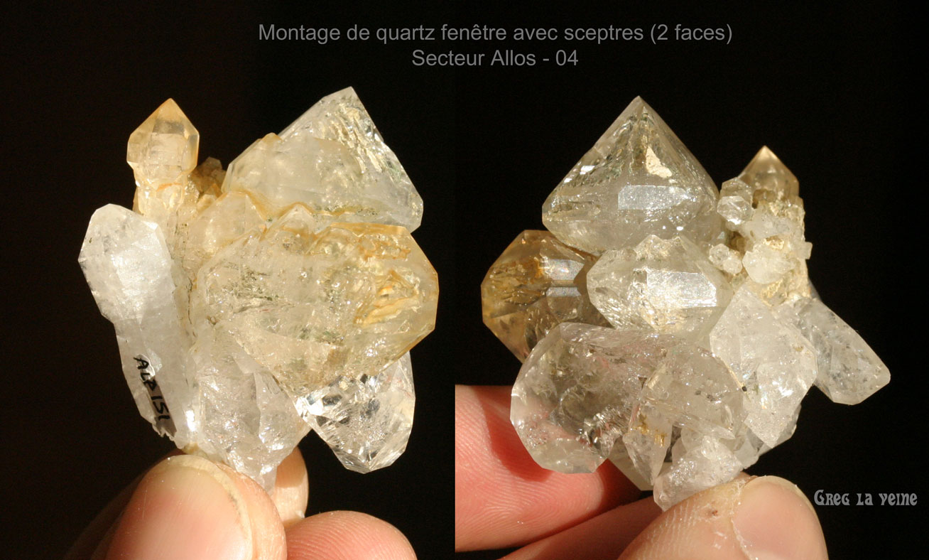 Un montage de quartz secteur "Falaise" et des petits sceptres sur un quartz à âme courbé à 180 ° (une drôlerie !)