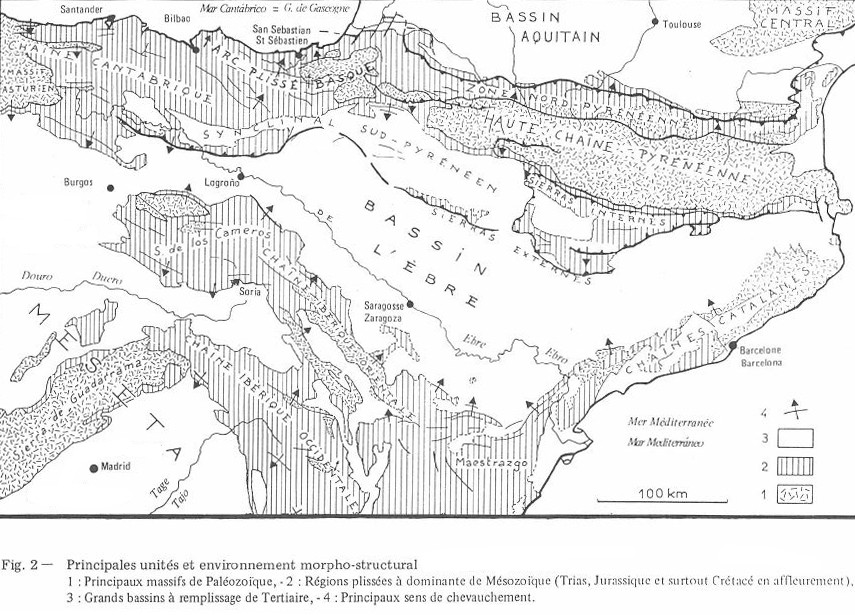 C'est très discutable ... et de fait, cela a été très discuté ! Aujourd'hui, on estime que l'on ne peut dissocier géologiquement "chaîne cantabrique" et "chaîne pyrénéenne" sensu-stricto. Cette "vieille" esquisse structurale (1983) le montrait déjà...