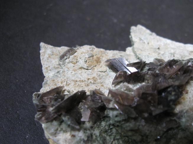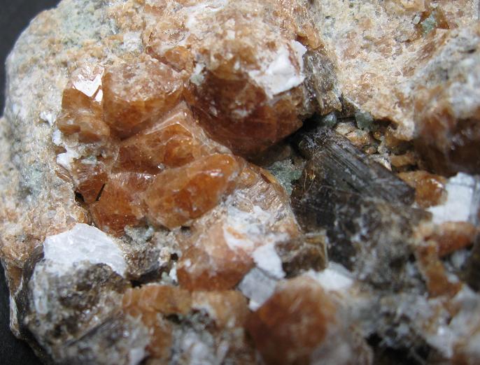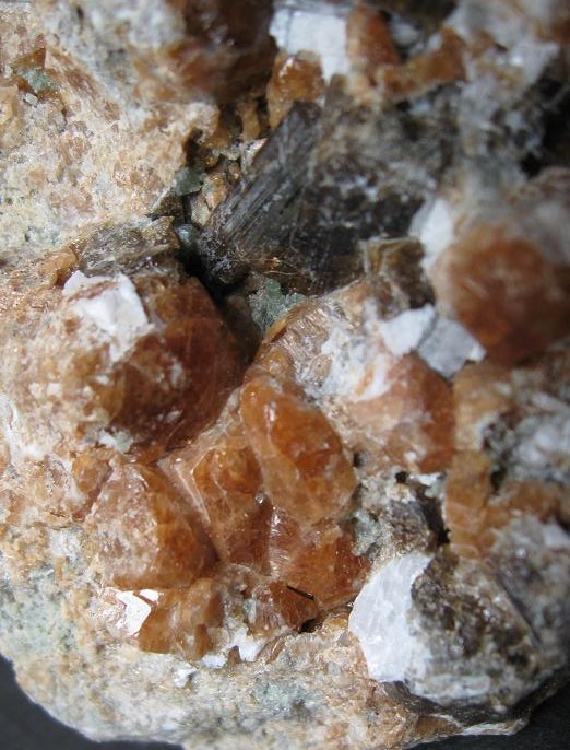 on y trouve aussi calcite , epidote , actinote (en cristaux 2mm), chalcopyrite, calcedoine , opale, zeolithes, gypse.