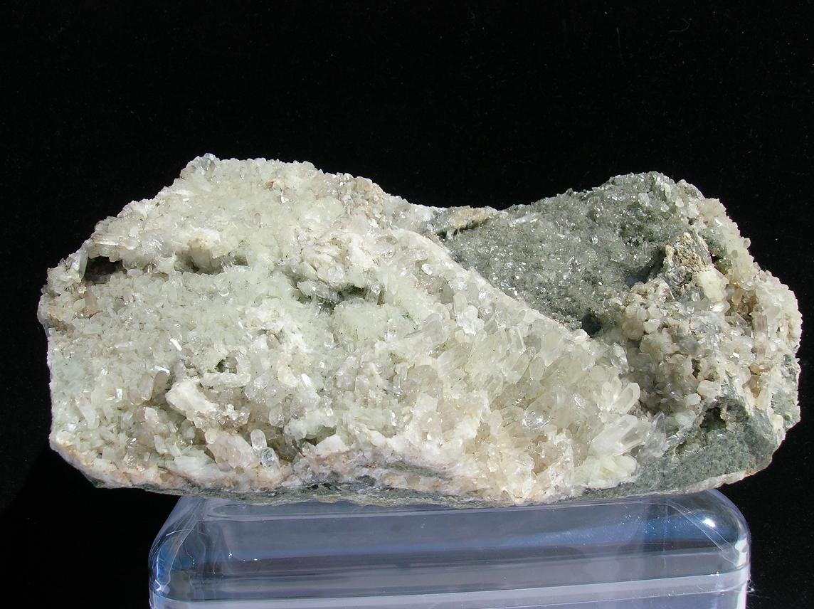 _prenhite et quartz et sphenes(non visibles). cristaux de 2 cm pour les quartz