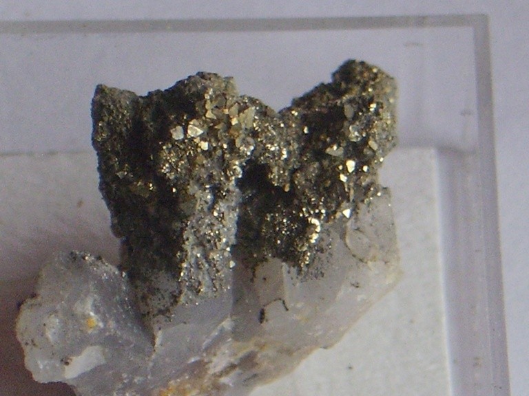 Et une curiosité : des quartz moulés avec des pyrites en surface. J'en ai un de 4cm ainsi fait. Juste vu une seule pointe millimètrique limpide.