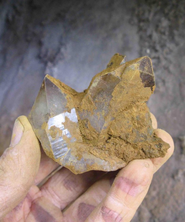Au début il n'y avait qu'un petit trou de 8/10cm de diamètre avec un peu d'oxyde de fer pulvérulent qui en était tombé, et quelques petits quartz laiteux (mais brillants et flottants !)... bref, de quoi bien exciter un caillouteux en manque !