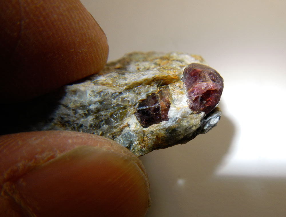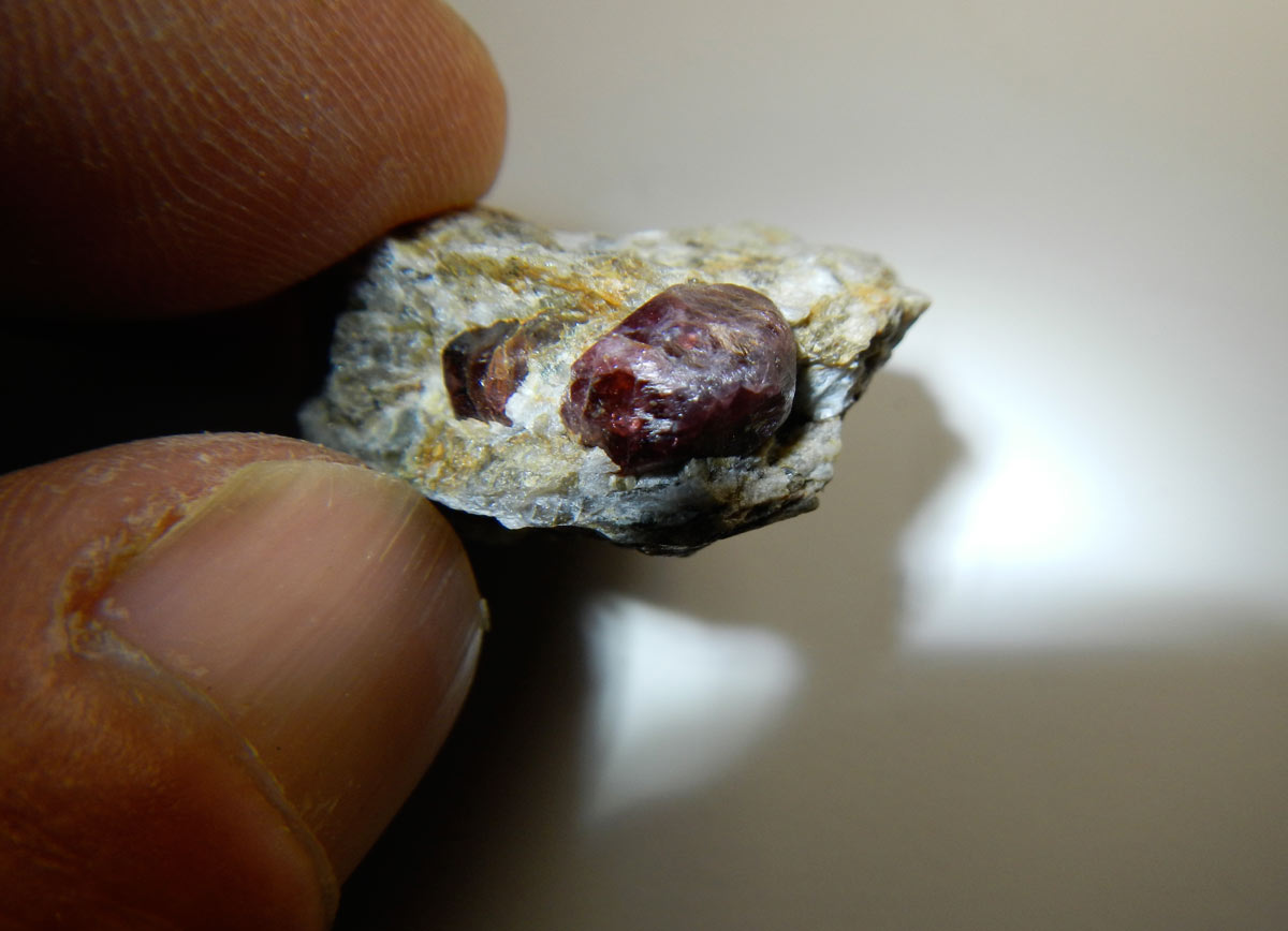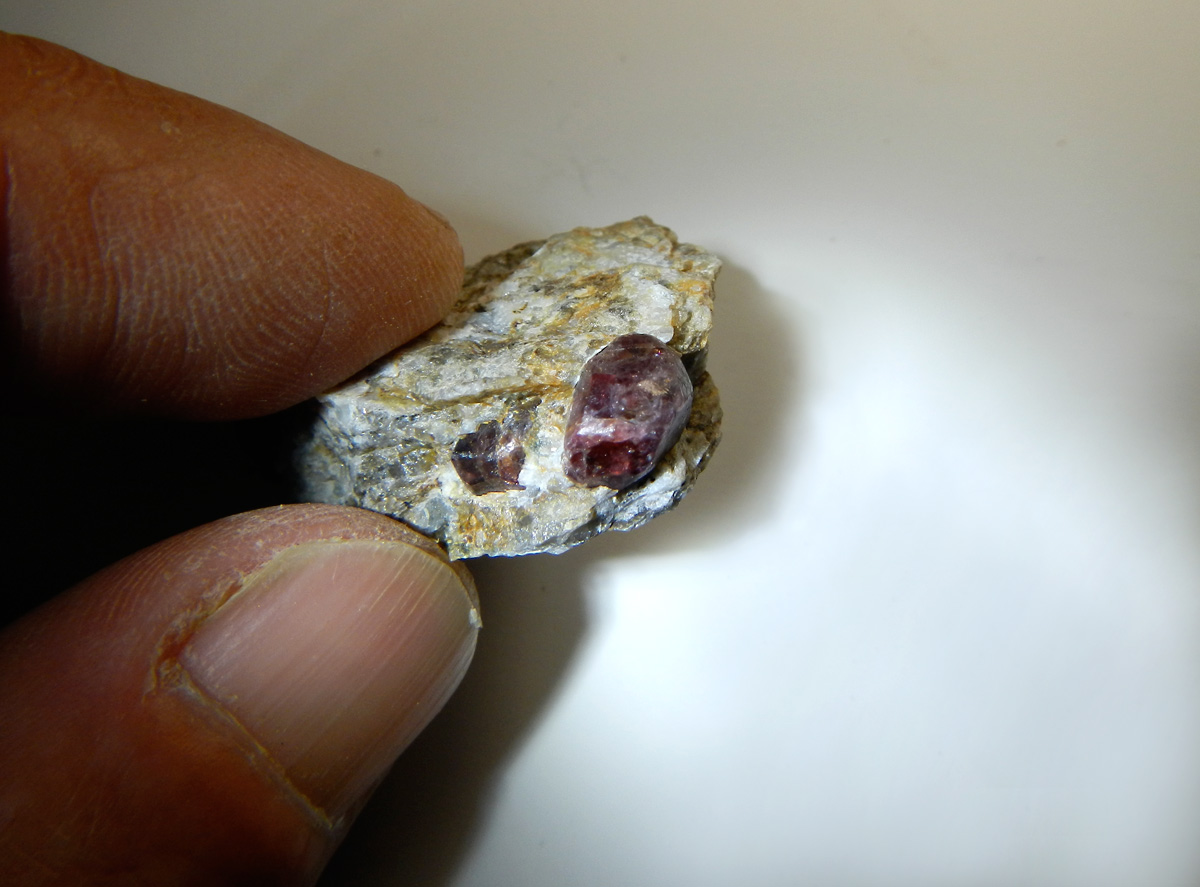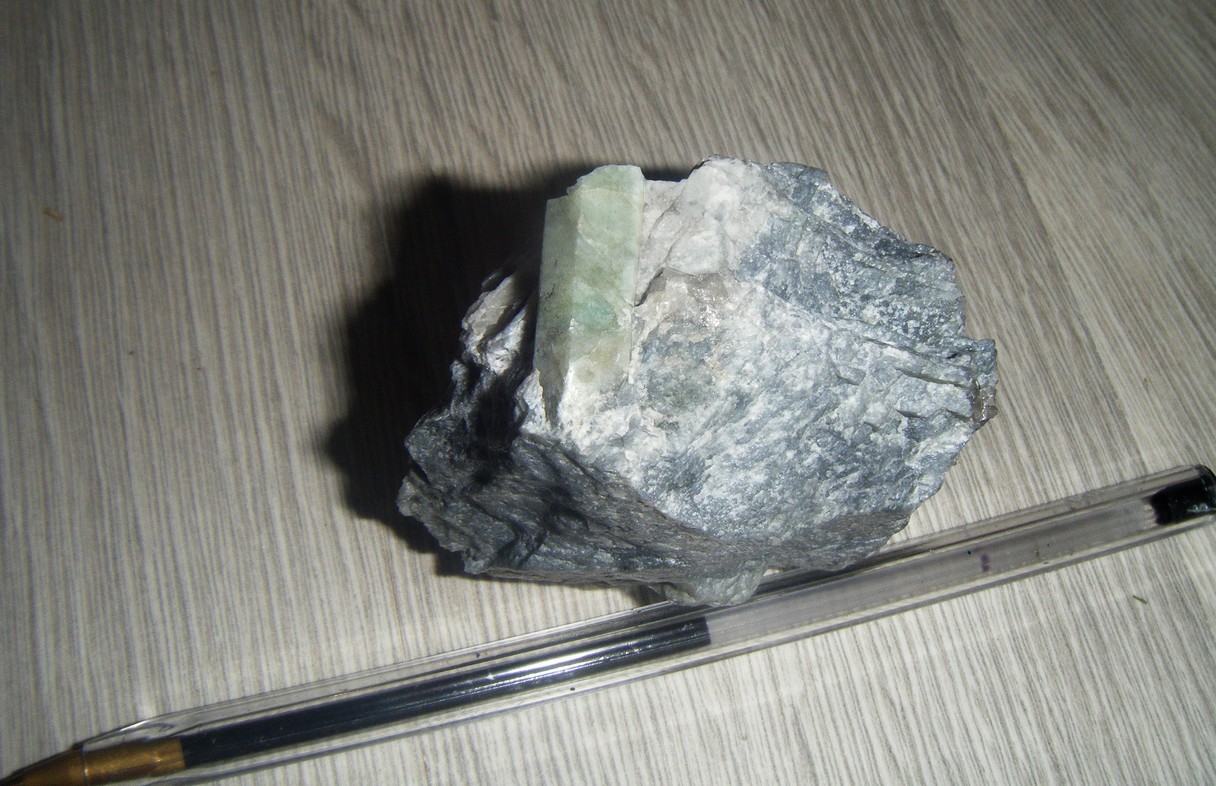 Du même endroit (Pénitence, commune du bosc), une découverte de ce printemps : béryls bien formés d'une couleur vert pâle assez inhabituelle pour ce gisement (2 prismes de 2cm env.); avec en prime un autre plus fin bleu pâle (15 mm).