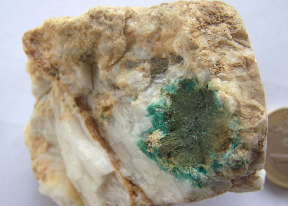 Merci, rives_3. Ni Aspeich, ni Cézy, que je connais bien ; je ne pense pas que, sur les affleurements de ces deux gîtes, on puisse trouver ce genre de chose ; de plus, la baryte et le zinc n'y sont pas signalés. Il s'agit de ce qui me semble un filon hydrothermal isolé dans les calcaires, vertical ; ces calcaires ont été bousculés par des intrusions magmatiques. Si je comprends bien la présence de la chalco, et donc de l'azurite et de la malachite, je ne comprends pas bien celle de la smithsonite car il n'y a aucune trace, en surface, de bl euh... de sphalérite ; la présence de la baryte est elle une indication qui justifierai de gratter plus profond ?