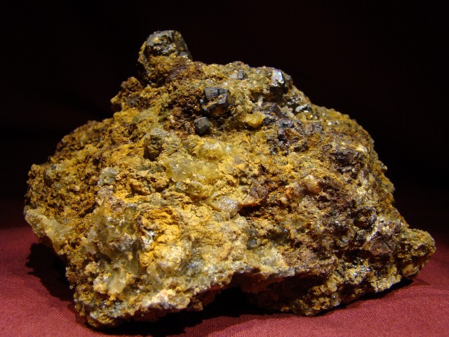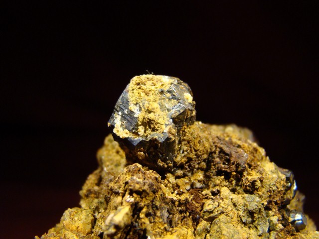 Une récolte de cette année, dans un skarn des Pyrénées centrales [je sais que cette provenance fait bondir certains, à juste raison (peut être) !] : grossulaire et diopside ; du moins, je l'espère. Je dis grossulaire à cause du contexte calcique ; en fait, un amateur n'a sans doute pas la possibilité de déterminer lui même de quel grenat il s'agit ? Arrête d'un grenat : 14 mm. Longueur de "cristal" de diopside : 26 mm.
