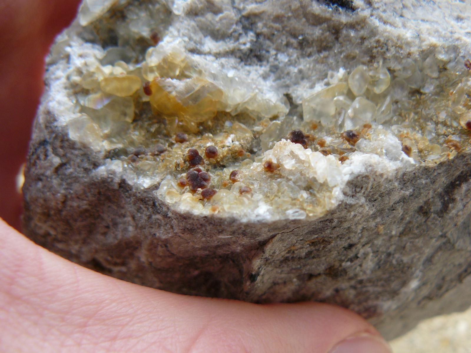 Par ailleurs, le seul minéral contenant de l'arsenic que j'ai vu sur ce secteur c'est de la mimétite, mais c'est ultra rare : une seule pièce en 8 ans !!! Je ne suis pas convaincu que l'arsenic soit si abondant dans ce coin là, car cette hypothétique mimétite pourrait être de la pyromorphite...!
