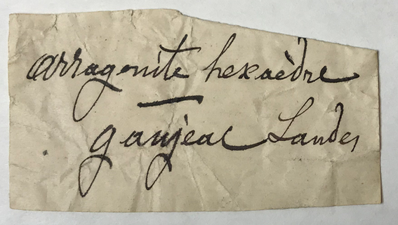 Lacroix : "L’aragonite abonde d’une part dans les marnes du bassin salifère, s’étendant entre Dax au Nord, et Pouillon au Sud (notamment entre ces deux localités, à la métairie du Couquet et à 2Km au sud de Saint-Pandelon), et de l’autre, dans les assises gypseuses, non salifères, situées à la frontière des Basses-Pyrénées, aux environs de Bastennes-Gaujacq, qui est la localité dont proviennent tous les échantillons étudiés jusqu’ici, et ceux qui sont recherchés pour les collections, à cause de leurs grandes dimensions. Ils atteignent en effet jusqu’à 40mm de longueur et de diamètre ; ils sont colorés en rouge par des inclusions d’argile ferrugineuse, et renferment souvent en abondance des cristaux bipyramidés de quartz rouge."