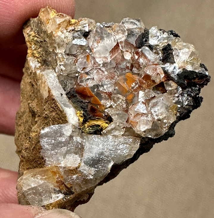 Je vous propose une curiosité qui n'est pas esthétique mais comme je n'en avais jamais vu pour cette provenance, voici de la fluorine du Tourmalet dans les Hautes Pyrénées. La couleur va de l'incolore au violacé plus ou moins soutenu.