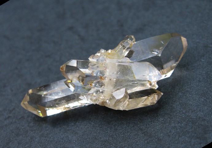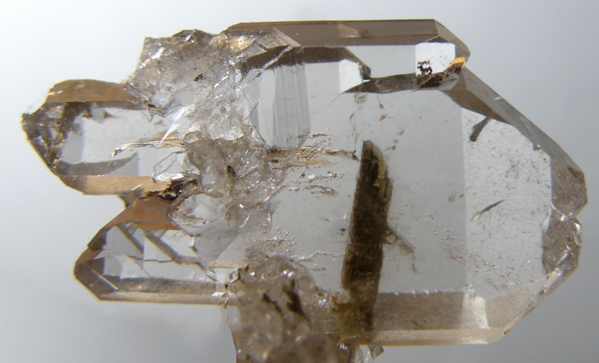 Pour les macles du quartz " …, pour déterminer le "sens" du quartz, il faut pouvoir voir les faces s et x ce qui est exceptionnel sur ce type de quartz … ", avec un peu de chance, le repérage de " moirures " et autres " damasquinages ", permet de savoir si on a affaire à une macle du Dauphiné, ou à une macle du Brésil… Car, la majorité des quartz sont maclés (au moins en partie, et souvent très discrètement !)…