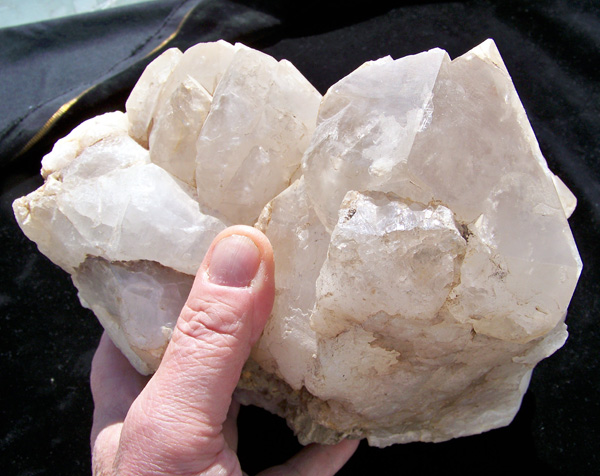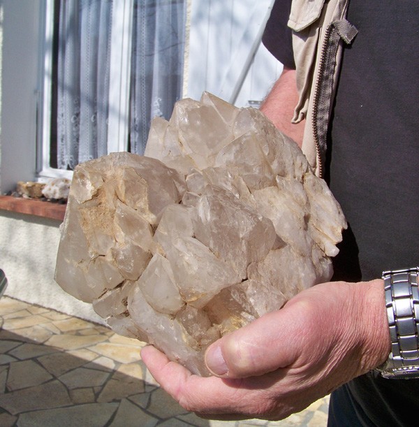 Bloc de quartz trouvé en 1969 ( eh oui...ça fait longtemps ! :siffler: ) lors d'une prospection sur une veine de quartz aux environs de Bôo-Silhen, au sud de Lourdes, Hautes Pyrénées. A l'époque, on trouvait aussi pas très loin sur la même route, du côté de St Créac de la belle pyrite sur ardoise. L'entrée de la carrière n'était pas minée... :grand sourire: et on ne risquait pas de récolter de la galène calibre 12 ! j'essayerai de faire une photo.