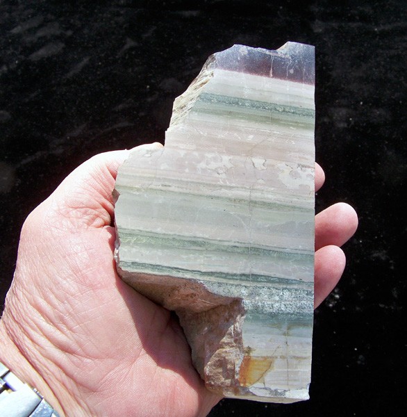 Et enfin pour finir, un petit morceau de marbre (? ou marne...à confirmer) qui m'a été donné par le père d'un ami qui habitait Arudy - 64. Ce monsieur avait la patience de couper et polir mes cailloux que je trouvais dans les montagnes. Comme il travaillait à la marbrerie de cette commune, c'était facile pour lui :siffler: