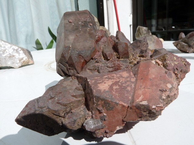 :clin-oeil: cette association quartz-orthose est magnifique, de plus la coloration hématoïde leurs donnent un cachet supplémentaire, c'est top :super: et quoi dire d'autre"what'else :surpris: