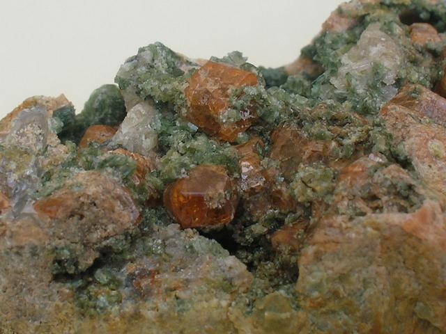 _grenat orange sur minéral vert(chlorite,):bloc de 6cm et cristal de 3mm