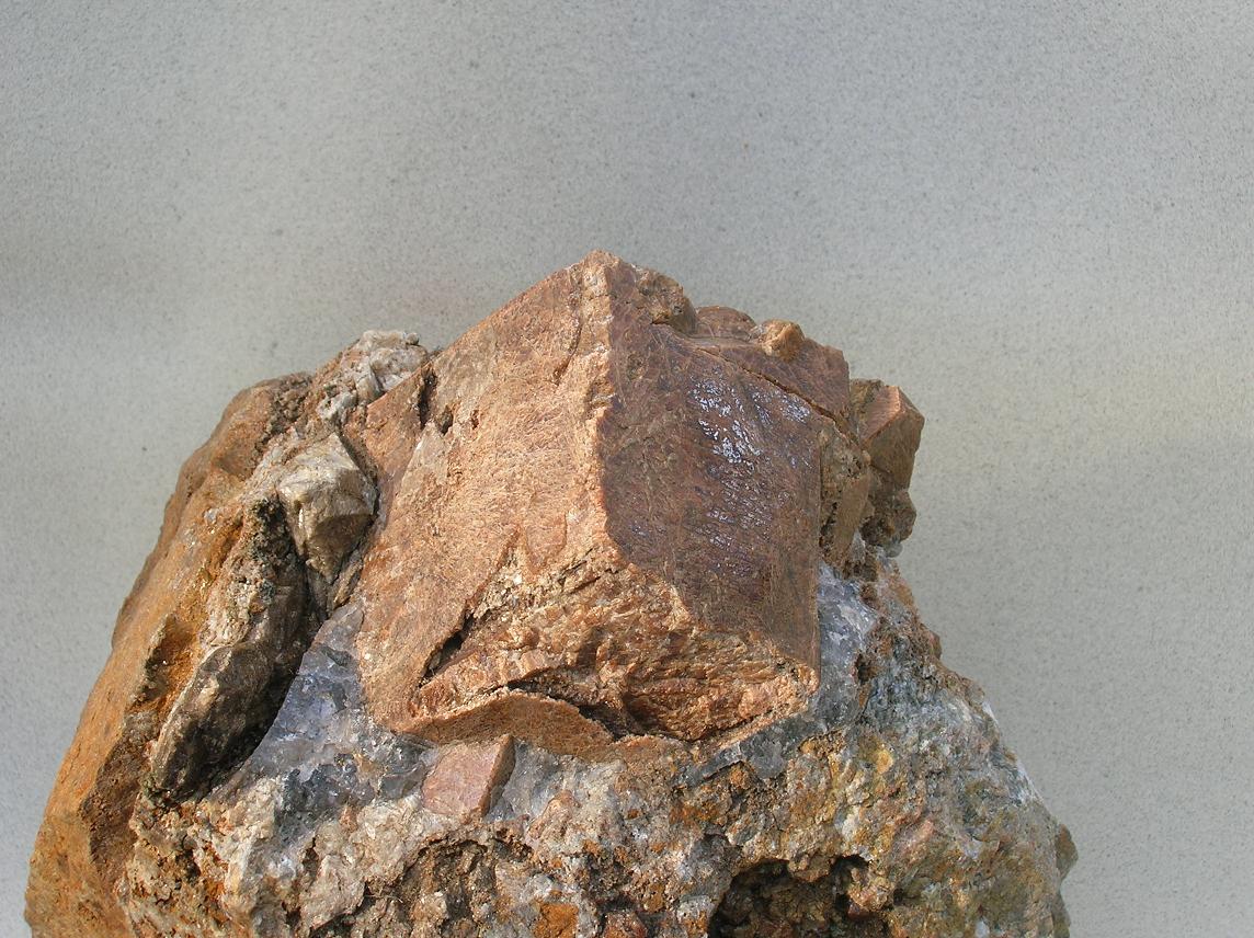 _bloc à grenat cristallisé avec détail du cristal de 15mm. légerement dégagé à l 'acide.