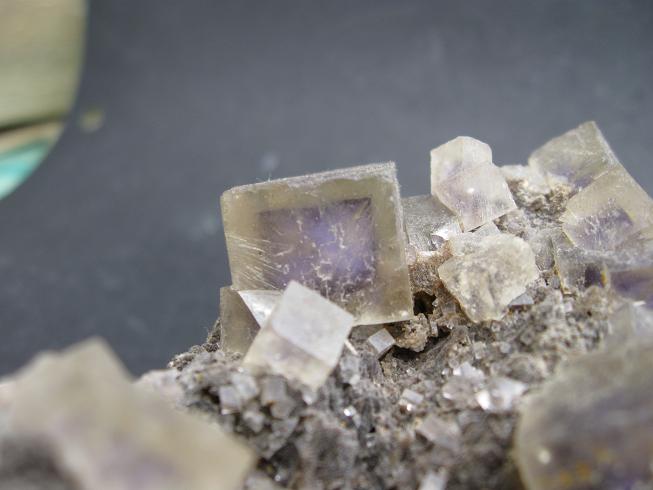 Effectivement Augustin, je commence à en avoir vu pas mal de ce coin, chez un peu tout le monde et (je crois que) celles à "fantômes" réels ne sont sorties que récemment (en gros 6 mois), ce qui n'enlève rien à ce qui a été trouvé depuis 15 ou 20 ans. En me relisant, j'ai dit une bêtise : les petits cubes ne sont pas "centraux" mais posés sur gangue puis il y a une reprise qui les englobe...