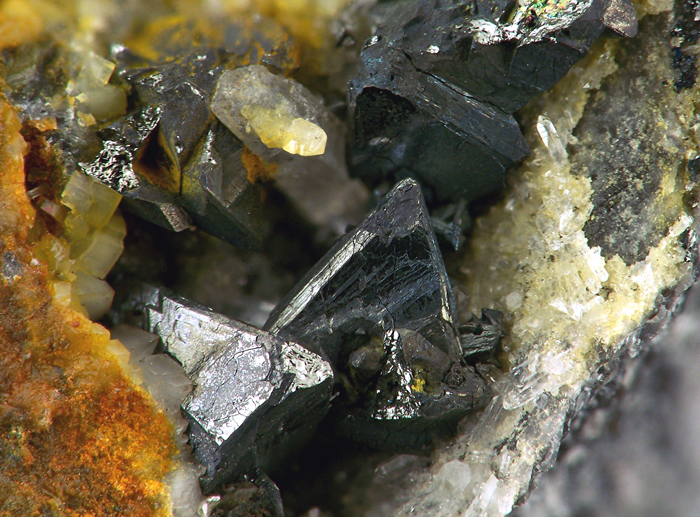 La présence d'Ag dans les blocs à galène se traduit par ces petits grains jaunâtres.
