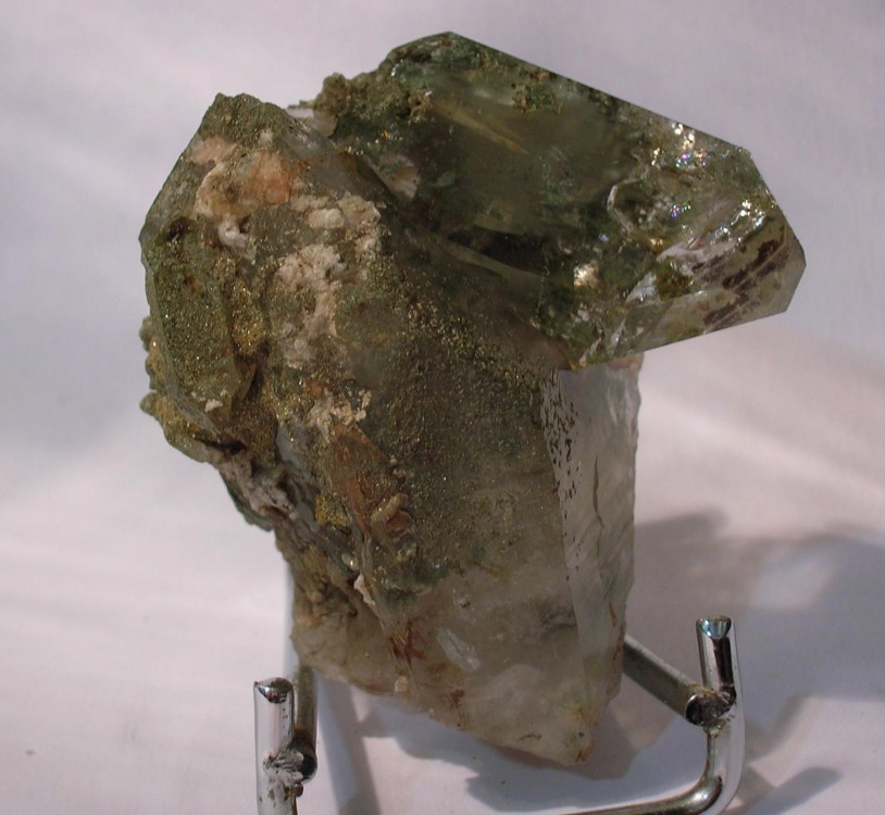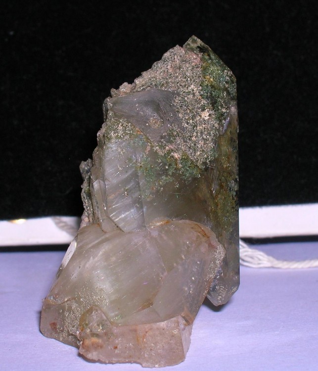 pour reveiller ce post qui commence à s 'endormir déjà:_un quartz chloriteux avec inclusions d 'asbeste biterminé avec un autre bip.