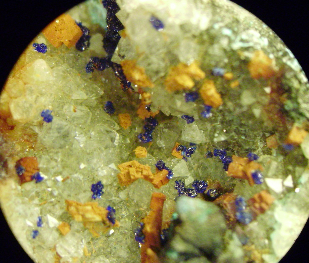 barytine crétée et azurite (taille du champ 5mm)toujours d'Alzen