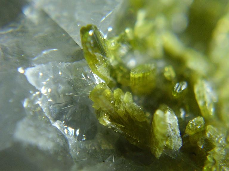 A venir, une, la seule que j'ai conservé, épidote dans la calcite et avec un peu de chance, je verrai si je peux faire apparaître les aiguilles d'asbeste qui sortent de la calcite non fondue à l'acide...