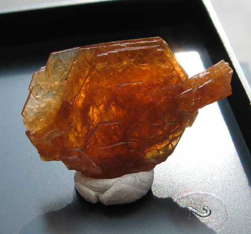 Bastnaésite, cristal flottant de 2,4 x 1,9 cm pour ~3mm d' épaisseur. Carrière de Trimouns, Ariège. Découverte printemps 2009.