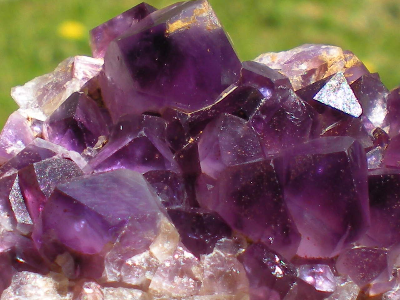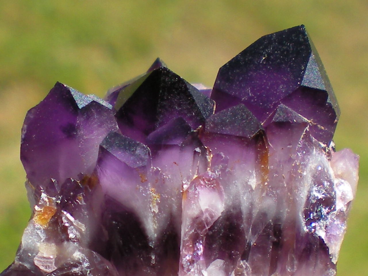 1. Améthyste de Pégut - Cristallisation classique - Plusieurs fantômes (arc en ciel) et sommet des pointes fumé
