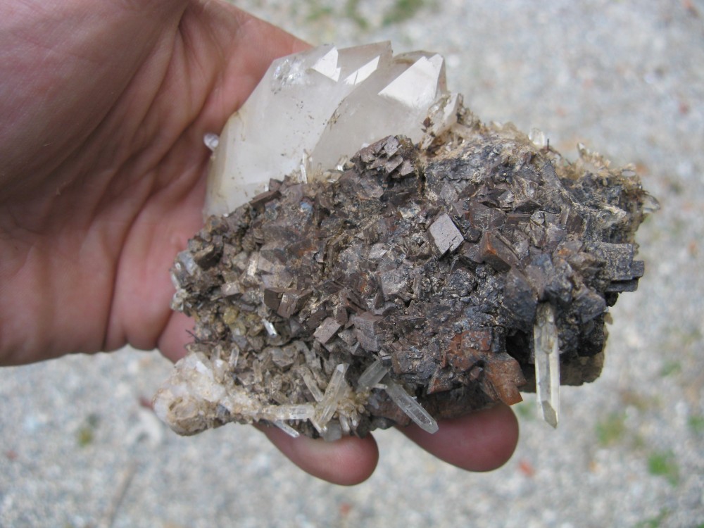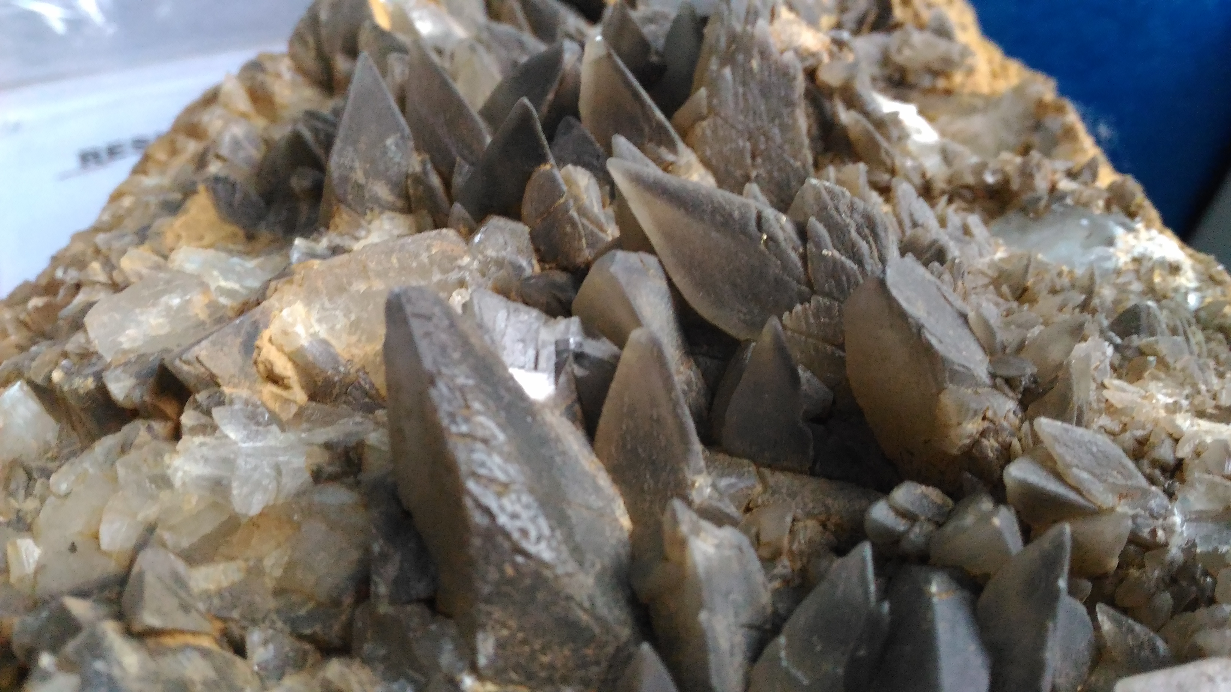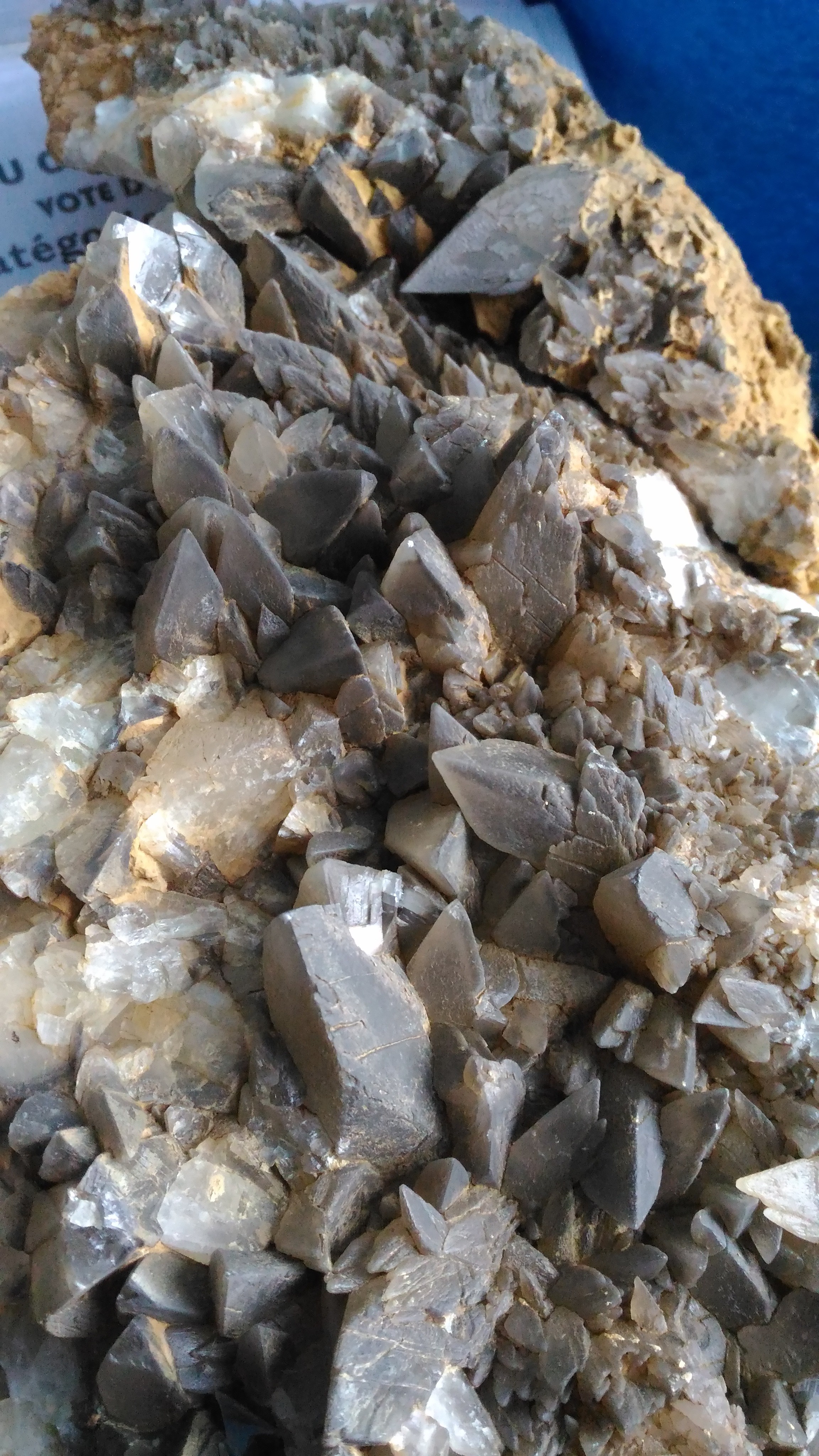 Le quartz est assez propre, mais la sidérite qui avait une couleur plutôt brune foncée est passée à marron clair et sa texture semble plus "fragile?" "Friable?" "poreuse?"
