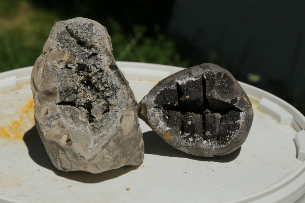 A gauche une septaria passé à l'HMPS, à droite une septaria "normal" (hermétique)