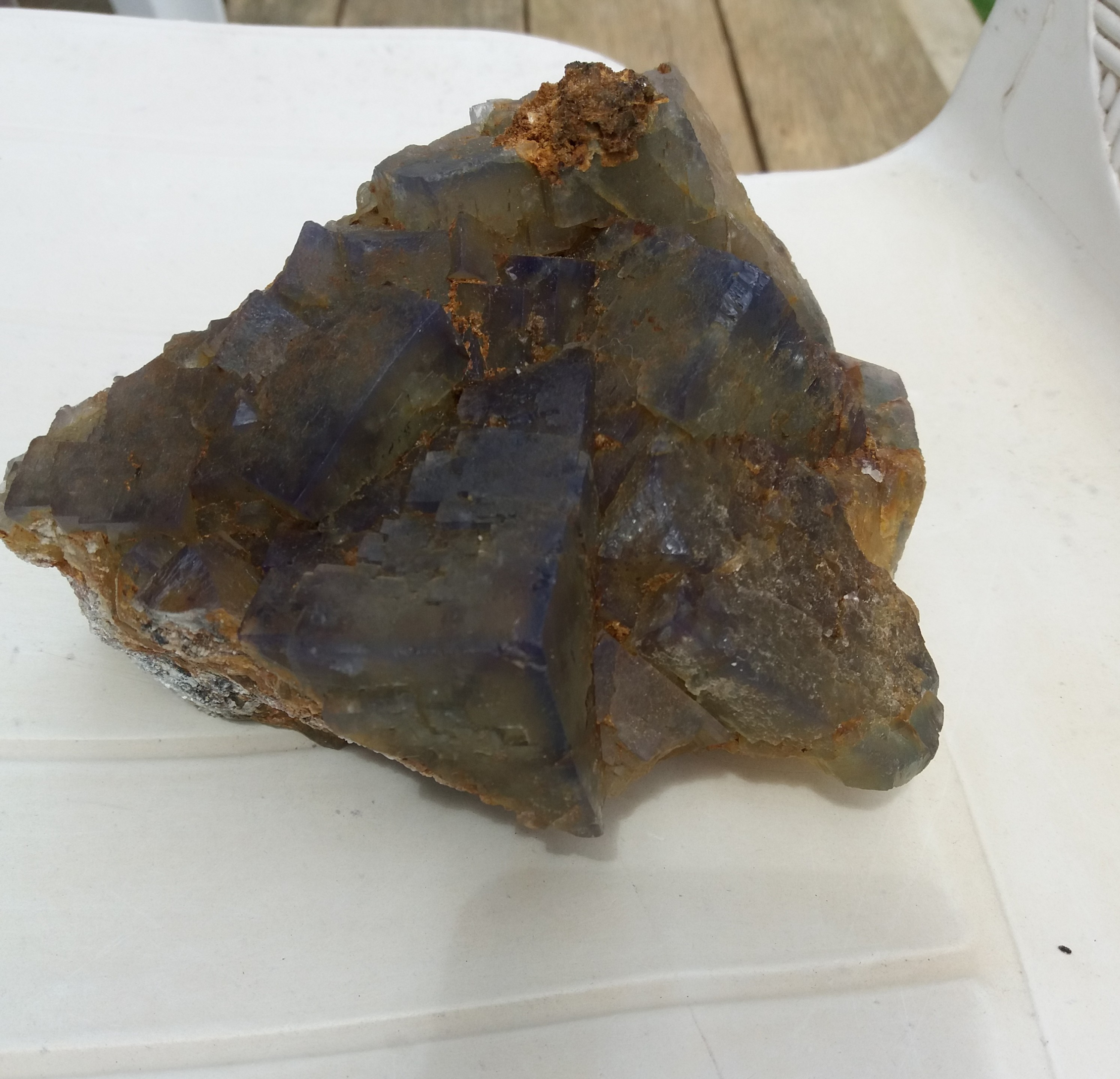 Bref, en regardant les minéraux que je lui ai apportés, il m'a dit que c'est un dépôt d'un autre minéral (style calcédoine, si je me souviens bien). Et c'est vrai, sur certains, on voit bien que le dépôt c'est formé que d'un côté. Il m'a même trouvé la zone du filon d'où ils venaient...