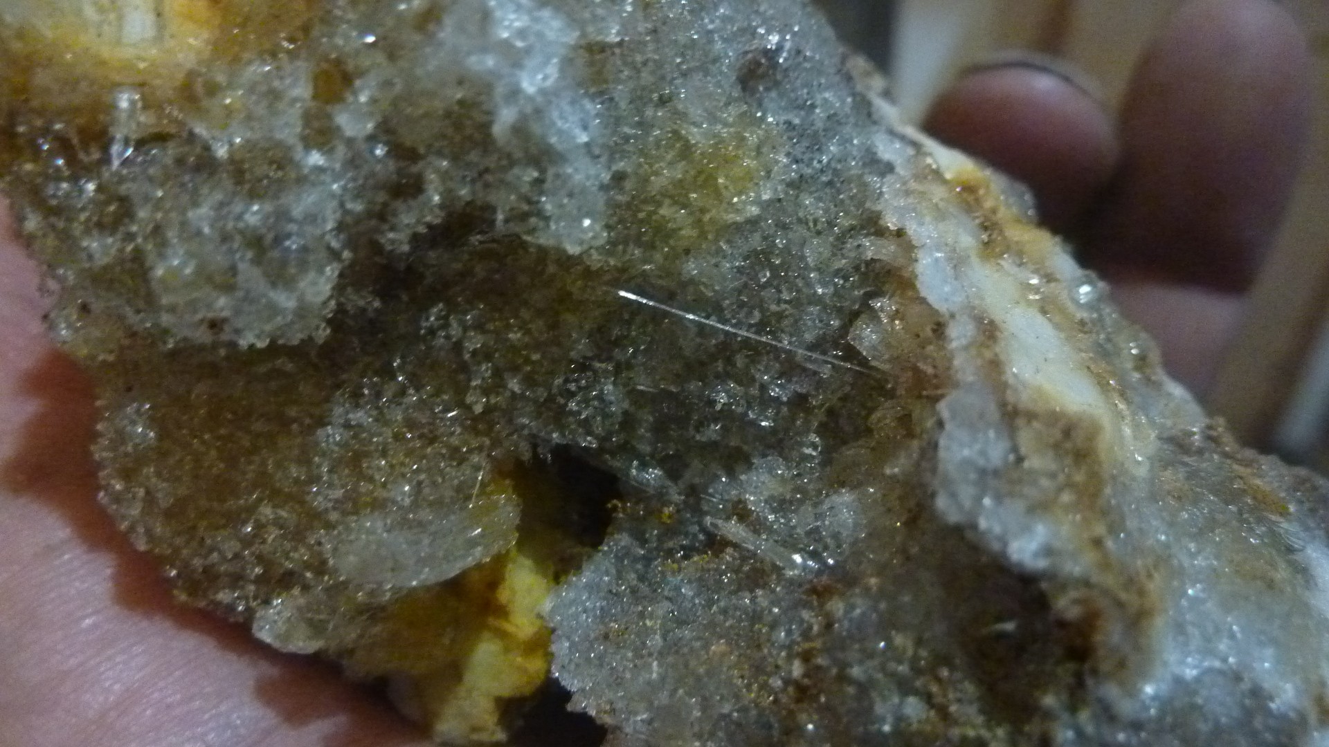 Dans la négative, est-ce qu'il existerait une autre méthode de nettoyage qui permettrait de se débarrasser ou d'atténuer malgré tout cette couche de sulfate de plomb? Je me doute que les cristaux de galène ne seront jamais brillants et aux reflets métalliques légèrement bleutés mais j'aurais bien aimé atténuer ce dépôt blanchâtre pour avoir un meilleur contraste avec le reste de la pièce malgré tout. Après, ce n'est qu'un échantillon glané dans des haldes lors d'un repérage rapide et il faut savoir se contenter de ce qu'on peut trouver 😉