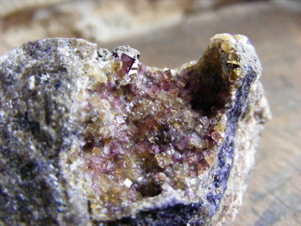 Marrante petite géode de fluo jaune et violette 30x20mm