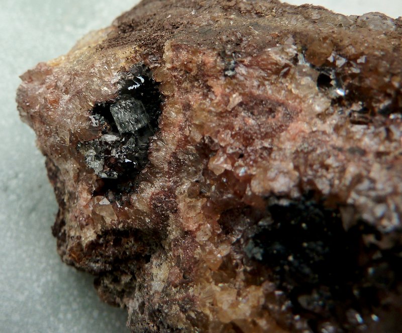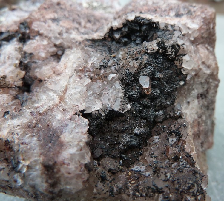 Un cristal sur quartz et goethite (j'ai remarqué 3 petits filaments de "mékeskecéksetruc" à gauche sur la 2ème photo, du coup j'hésite aussi à nettoyer mais je ne sais même pas si c'est minéral)