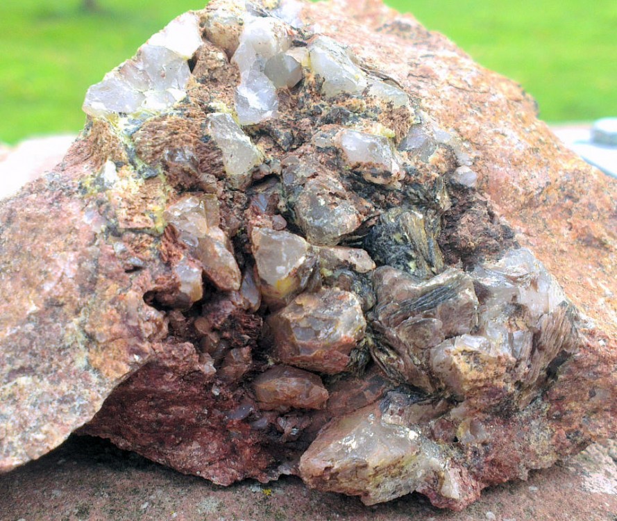 fluo, quartz, améthyste et je sais pas quoi, (pyrite ?)