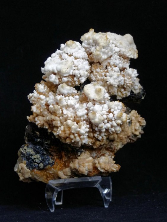 et un truc d'oxydation du plomb des petites boules jaunes brillantes non cristalisées sur cubes de galène (on me dis dans l'oreillette que ça pourrait être de l'hemimorphite) peut être mimétite Avallonais