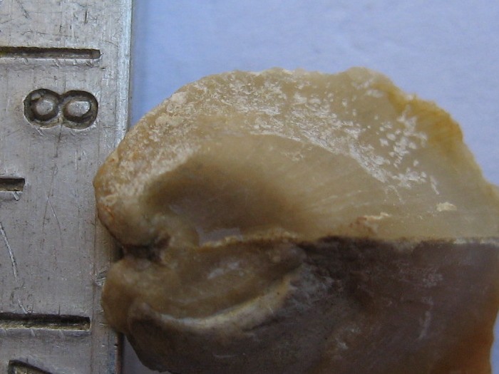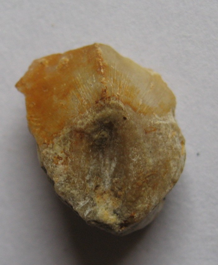 bonjour, voici un fossile qui me pose problème,Bajocien supérieur 14, taille: 1,8 cm x 1,4 cm,épaisseur 1cm (croix) ;) ce n'est pas un bivalves, pas une pince de crustacé,jamais vu!! semble creux il y a un remplissage! help me!!!
