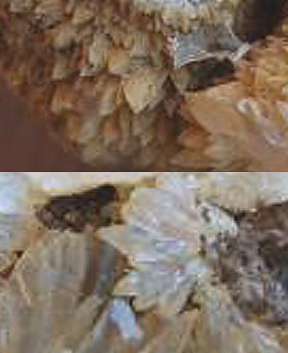 Entre parenthèses je viens de faire un essai avec du vinaigre (8% acide acétique) sur des cristaux sensiblement identiques : aucune réaction. Par contre avec HCl 10%, on voit bien que c'est de la calcite. Une preuve de plus que le vinaigre ce n'est pas fiable.
