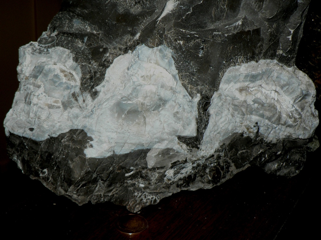 C'est hydrothermal de basse température, le bleu est lié à mon avis à la diffusion de Rayleigh, le blanc à la diffusion de Mie. La différence entre la bleue et la blanche, c'est l'hydratation et l'altération (voir recristallisation). Pour la compo je met ma main à couper que c'est de la silice quasi pure. :coucou!: