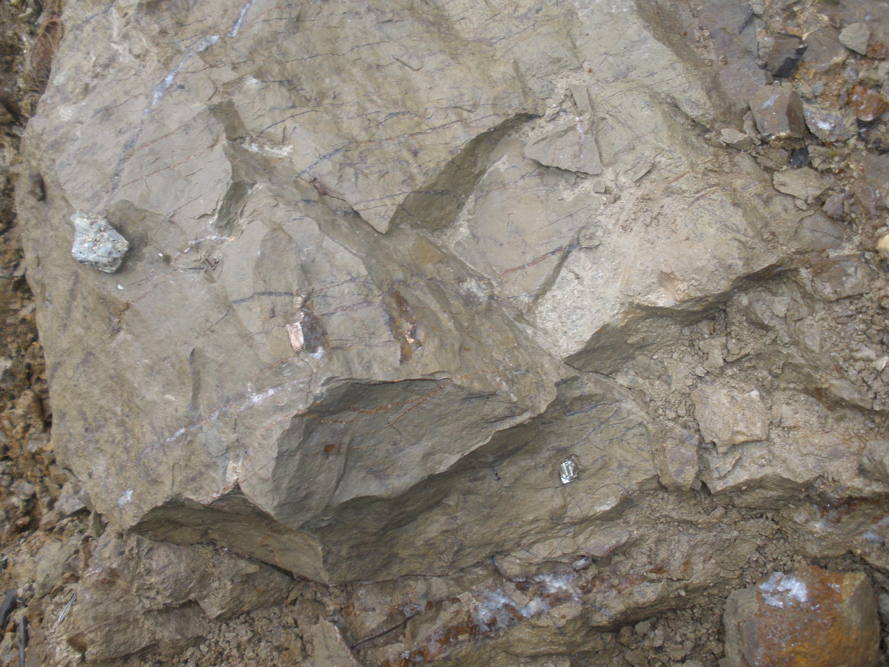 pour ce que j'en ai compris, il s'agit d'une veine mise à jour sur un filon étendu en longueur mais très étroit en largeur. La pyrite côtoie la sidérite et le quartz dans un filon parallèle. cette conclusion est issue des observations d'un néophyte (himself) sur une bande de terrain de 50 m de long sur dix de large.