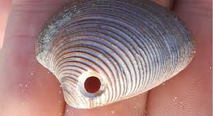 Non, pas un Phomadidae mais plutôt un gastéropode (Natice ou autre) qui perçait pour manger le bivalve.