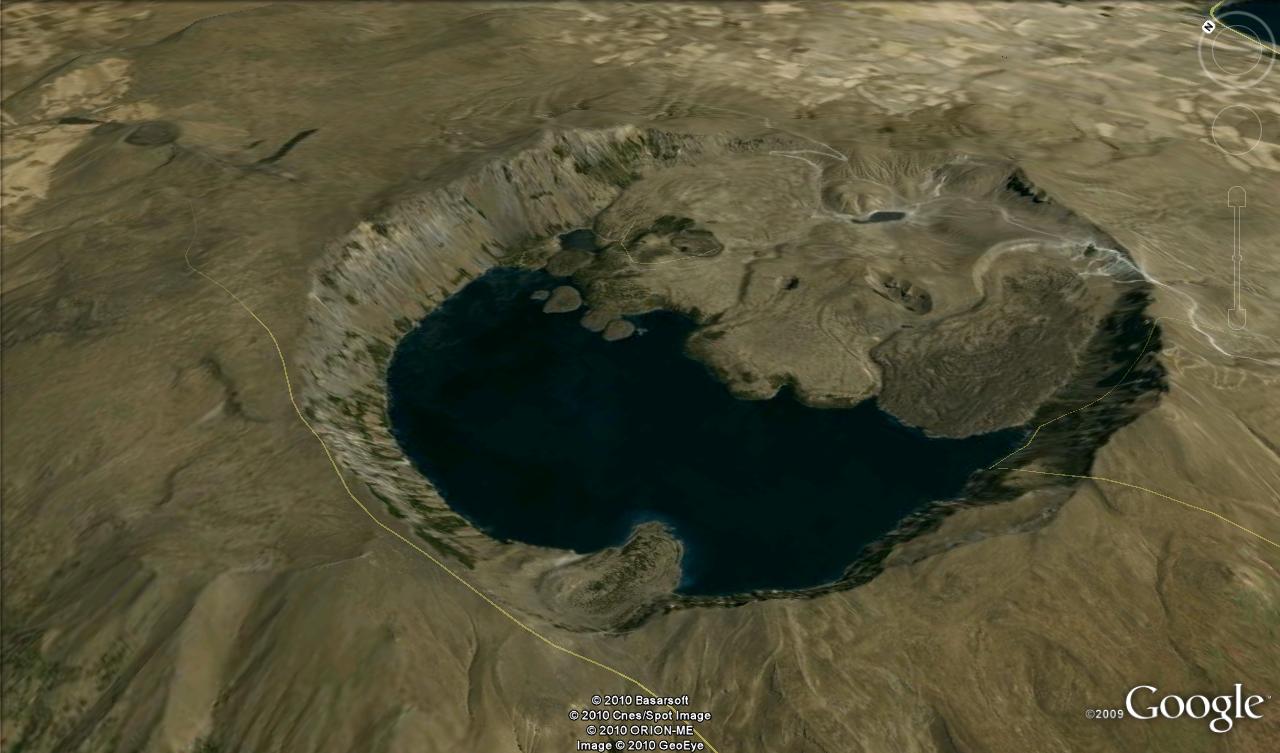 1- oui il y a un lac de cratère (mais peut-être qu'il n'existe plus d'ailleurs.... ceci peut être un indice).
