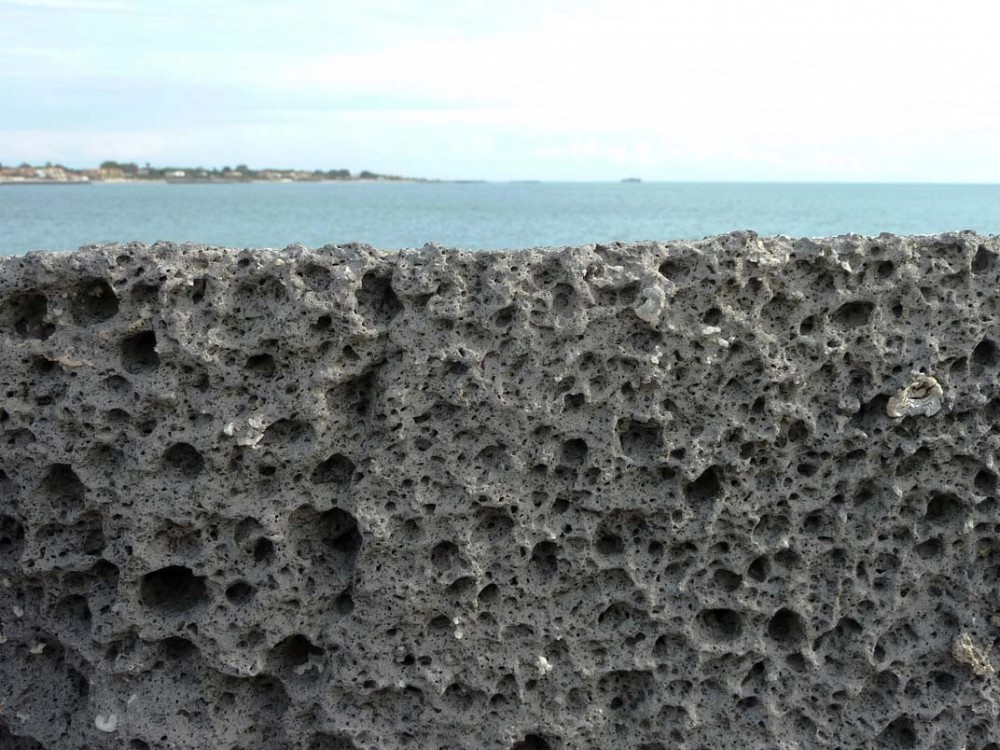 Sur l'estuaire de la Gironde, près des pêcheries, enrochement de calcaire :