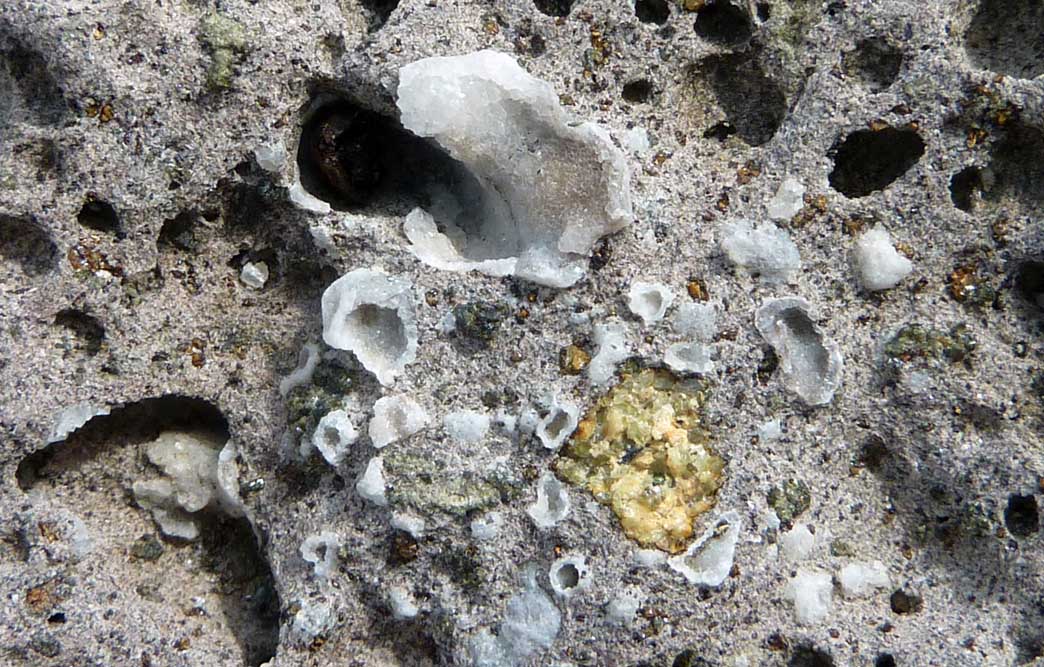 Dans ces blocs, des géodes de calcite :