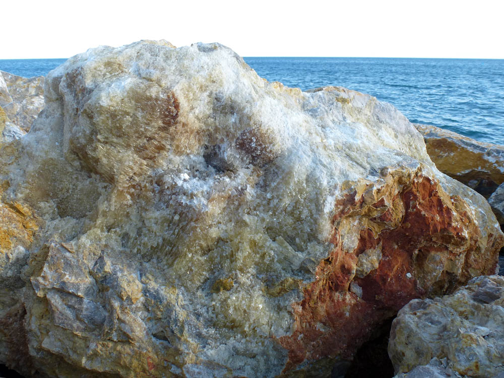 Des cailloux déplacés par l'homme depuis des carrières de l'arrière pays (pas loin en fait) et posés sur le littoral ...