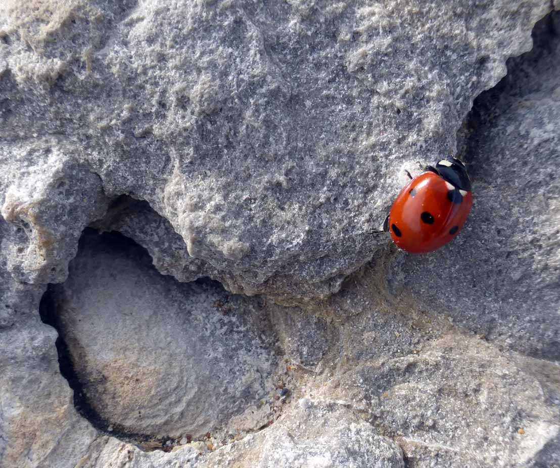 Le Bajocien du coin en donne de bons exemples, mais là j'ignore d'où viennent précisément ces blocs d'enrochement... pas de bien loin sans doute.